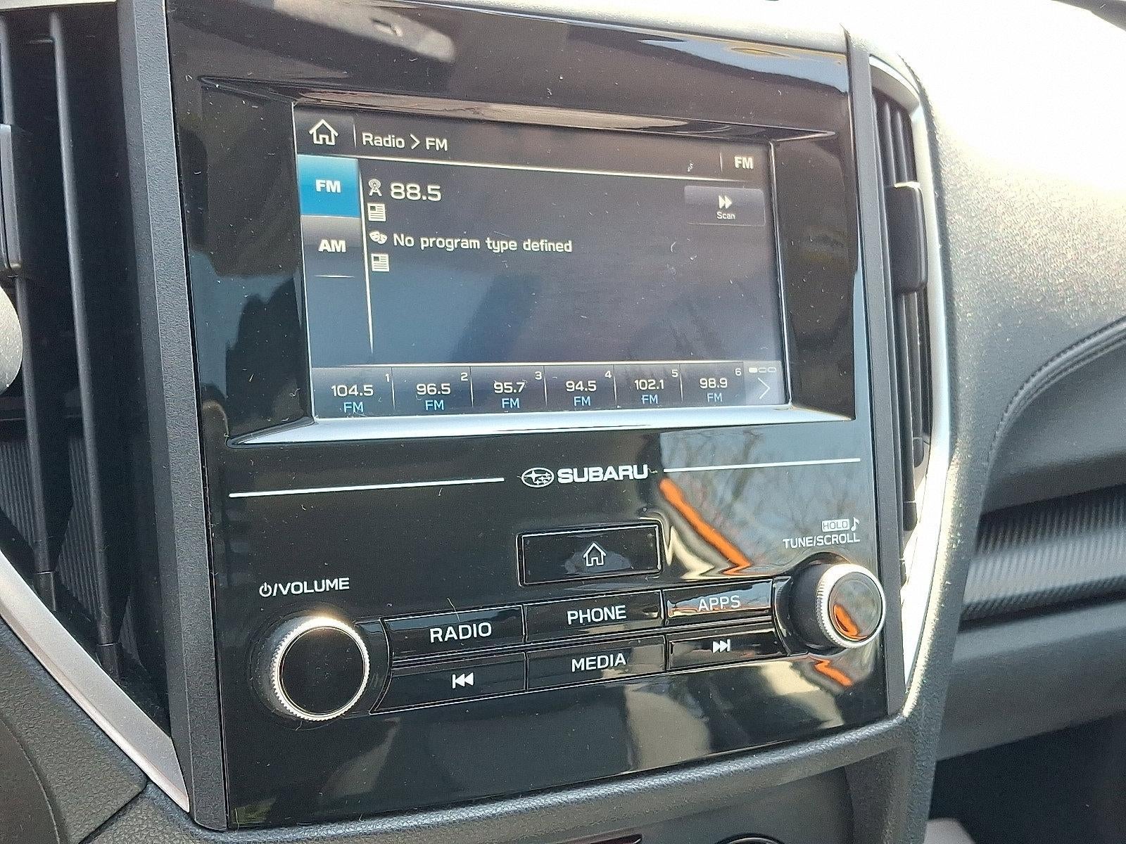 - Radio: Subaru Starlink 6.5" Multimedia System -inc: AM/FM stereo, multi touch gesture high resolution 6.5" LCD display, Bluetooth® audio streaming connectivity, Bluetooth® hands-free phone connectivity, iPod control capability, USB port, 3.5mm auxiliary input jack, 6 speakers, roof mounted audio antenna and Android Auto and Apple CarPlay capability for compatible phones StarLink enrollment cannot be applicable to Fleet Management Companies (FMCs) or to Commercial fleet accounts at this time.
