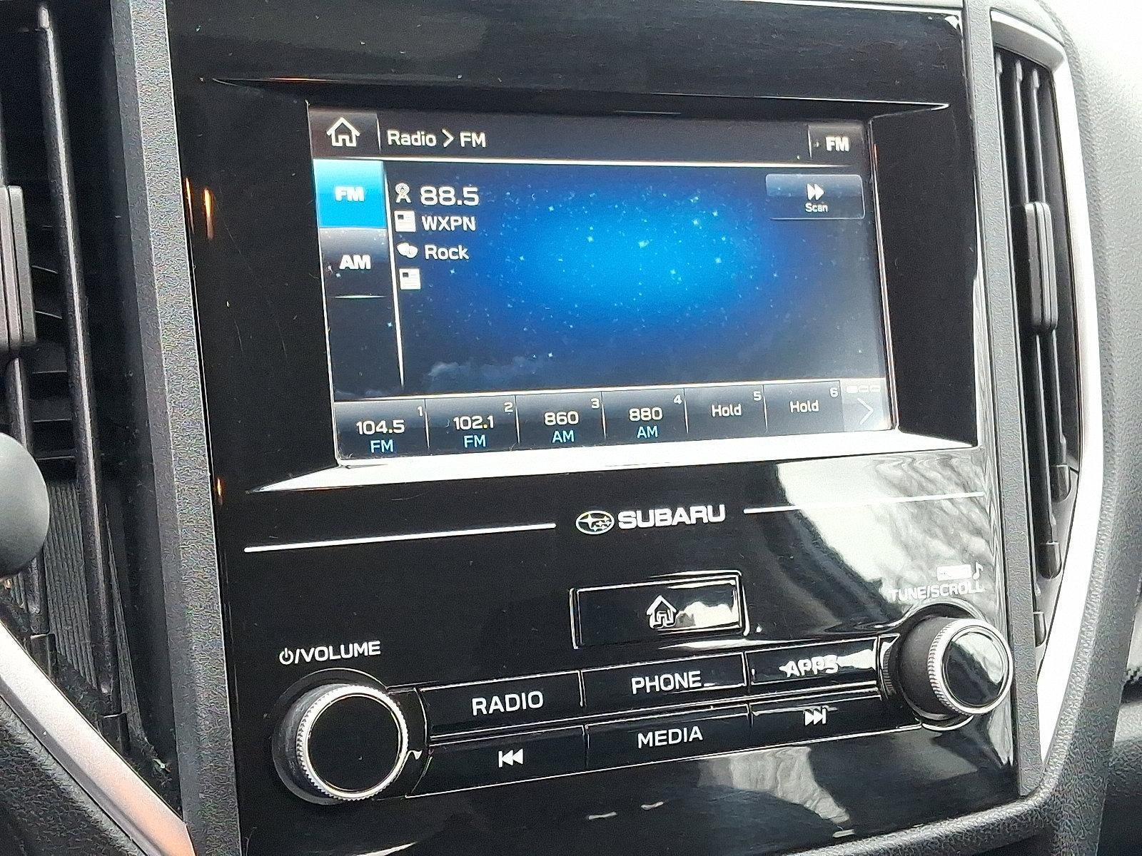 - Radio: Subaru Starlink 6.5" Multimedia System -inc: AM/FM stereo, multi touch gesture high resolution 6.5" LCD display screen, Bluetooth® audio streaming connectivity, Bluetooth® hands-free phone connectivity, iPod control capability, rear vision camera, smartphone integration, AHA, Android Auto, CarPlay, Pandora, USB port, 3.5mm auxiliary input jack, 6 speakers and off delay operation StarLink enrollment cannot be applicable to Fleet Management Companies (FMCs) or to Commercial fleet accounts at this time.