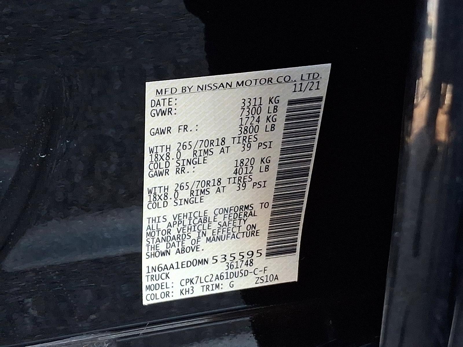 2021 Nissan Titan Super Black New Air Filter, New front Brakes, Fresh Oil Change, Titan SV, 5.6L V8 DOHC 32V 400hp, 9-Speed Automatic, 4WD, 110V Outlet in Bed, 110V/12V Outlets In Back Of Center Console, 2 Illuminated USB-A Ports In Back Of Center Console, 4-Pin/7-Pin Wiring Harness Connector (Rear Bumper), All Season Floor Mats, Auto-Dimming Rear-View Mirror, Auto-Dimming Rearview Mirror w/UGDO, Chrome Interior Door Locks, Convex Spotter Mirror, Dedicated Cell Phone Holder, Dual Zone Automatic HVAC, Electronic Locking Tailgate, Flat Floor Function w/Tie Down Hooks, Front & Rear Parking Sensors, Heated Front Captain's Chairs, Heated Manually Extendable Tow Mirrors, Intelligent Key System, Leather-Wrapped Steering Wheel, LED Tailgate Area Illumination, LED Under Rail Bed Lighting, Off Road Protection Package, Power Sliding Rear Window w/Defogger, Puddle Lamps, Radio: NissanConnect w/Navigation, Rain Sensing Wipers, Rear HVAC Vents, Rear Utility Bed Step, Receiver Hitch, Remote Engine Start on Key Fob, Spray-On Bedliner, SV Convenience Package, SV Tow Package, SV Utility Package, Traffic Sign Recognition (TSR), Trailer Brake Controller, Trailer Light Check Function On Key Fob, Universal Garage Door Opener, Utilitrack System w/4 Tie-Down Cleats. Clean CARFAX.