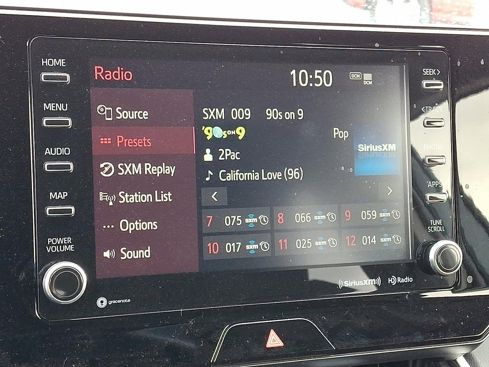 - Radio: Audio Plus -inc: 8" touchscreen, AM/FM/HD Radio, 6 speakers, 1USB and 1 AUX media port, 3 additional USB charge ports, advanced voice recognition, hands-free phone capability and music streaming via Bluetooth® wireless technology, Android Auto, Apple CarPlay and Amazon Alexa compatible, SiriusXM w/3-month All Access trial, Connected Services - Safety Connect w/1-year trial, Service Connect w/10-year trial, Remote Connect w/1-year trial, Wi-Fi Connect w/up to 2 GB within 3-month trial, See toyota.com/audio-multimedia and toyota.com/connected-services for details