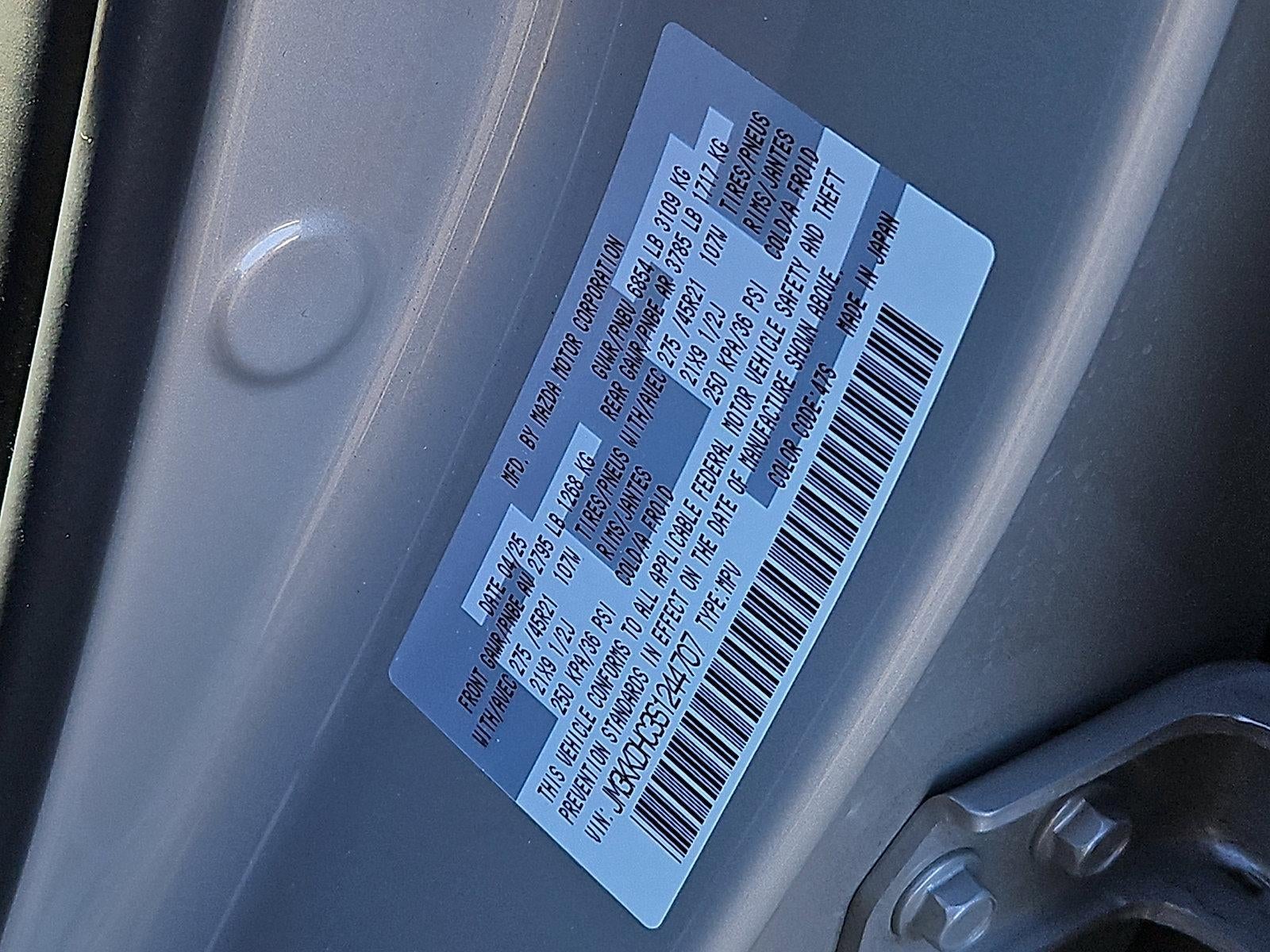 CARFAX One-Owner. Clean CARFAX. Certified. Platinum Quartz 2025 Mazda CX-90 3.3 Turbo S Premium MAZDA CERTIFIED AWD 8-Speed Automatic I6 Turbo Just Inspected, 1 OWNER, LOW MILES, CLEAN CARFAX, 12 Speakers, 2nd-Row Captain's Chairs, 3rd row seats: bench, 4-Wheel Disc Brakes, ABS brakes, Alloy wheels, AM/FM radio: SiriusXM, Heads-Up Display, Memory seat, Power Liftgate, Power moonroof, Traction control, Wheels: 21" x 9.5J Aluminum Alloy. Priced below KBB Fair Purchase Price!